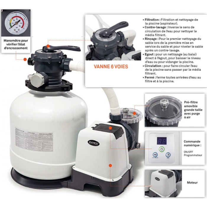 Pour utiliser votre filtre à sable, commandez aussi sur Raviday Piscine 2 tuyaux pour filtre Intex.