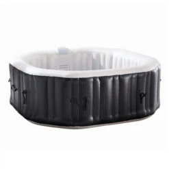 Profitez en effet d’un spa pouvant contenir 910 litres d’eau à une température située entre 20 et 40°C, le tout dans un bassin gonflable teinté de noir carbone à l’extérieur et de blanc à l’intérieur.